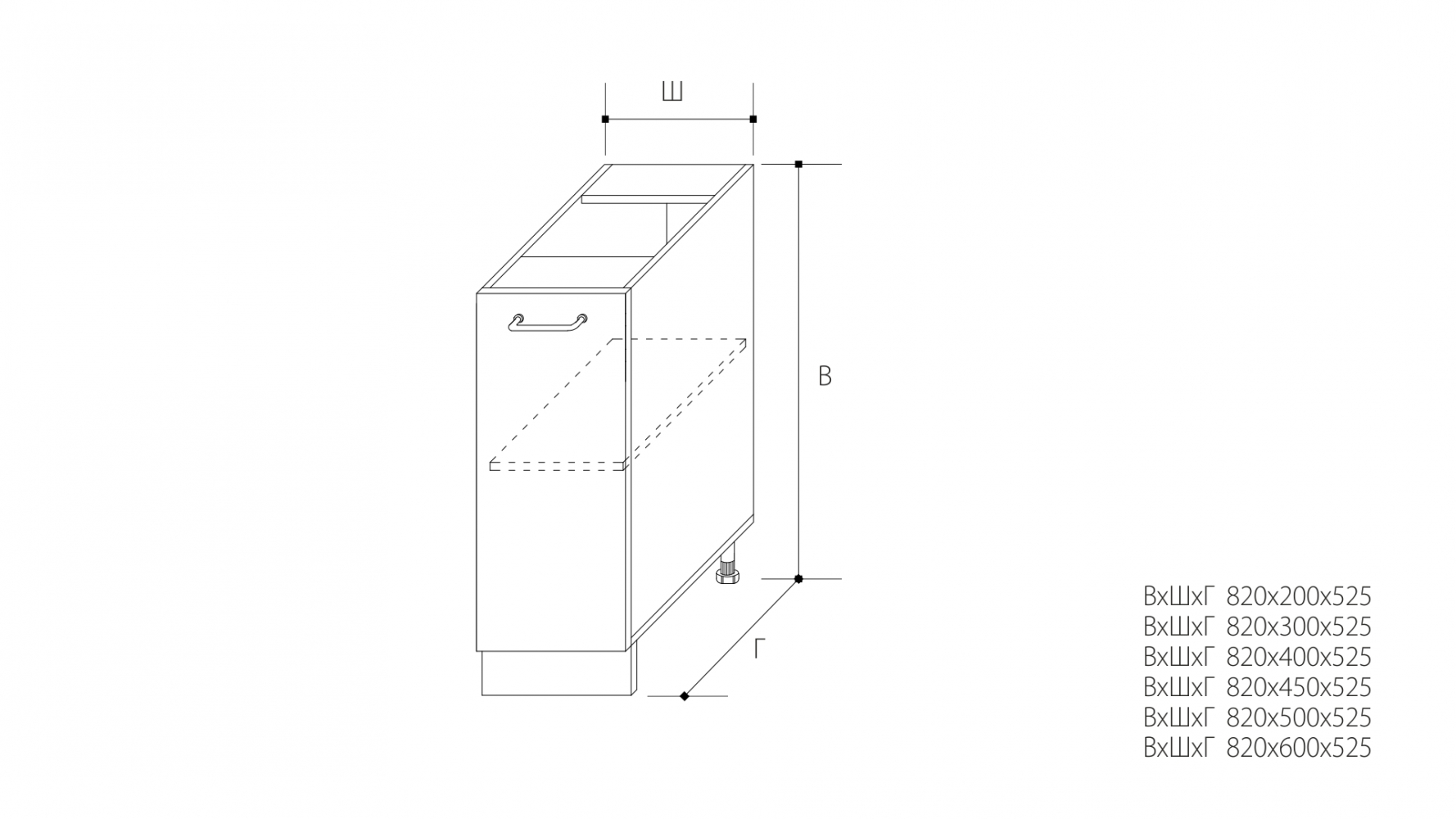 ВхШхГ: 820х500х525 мм.